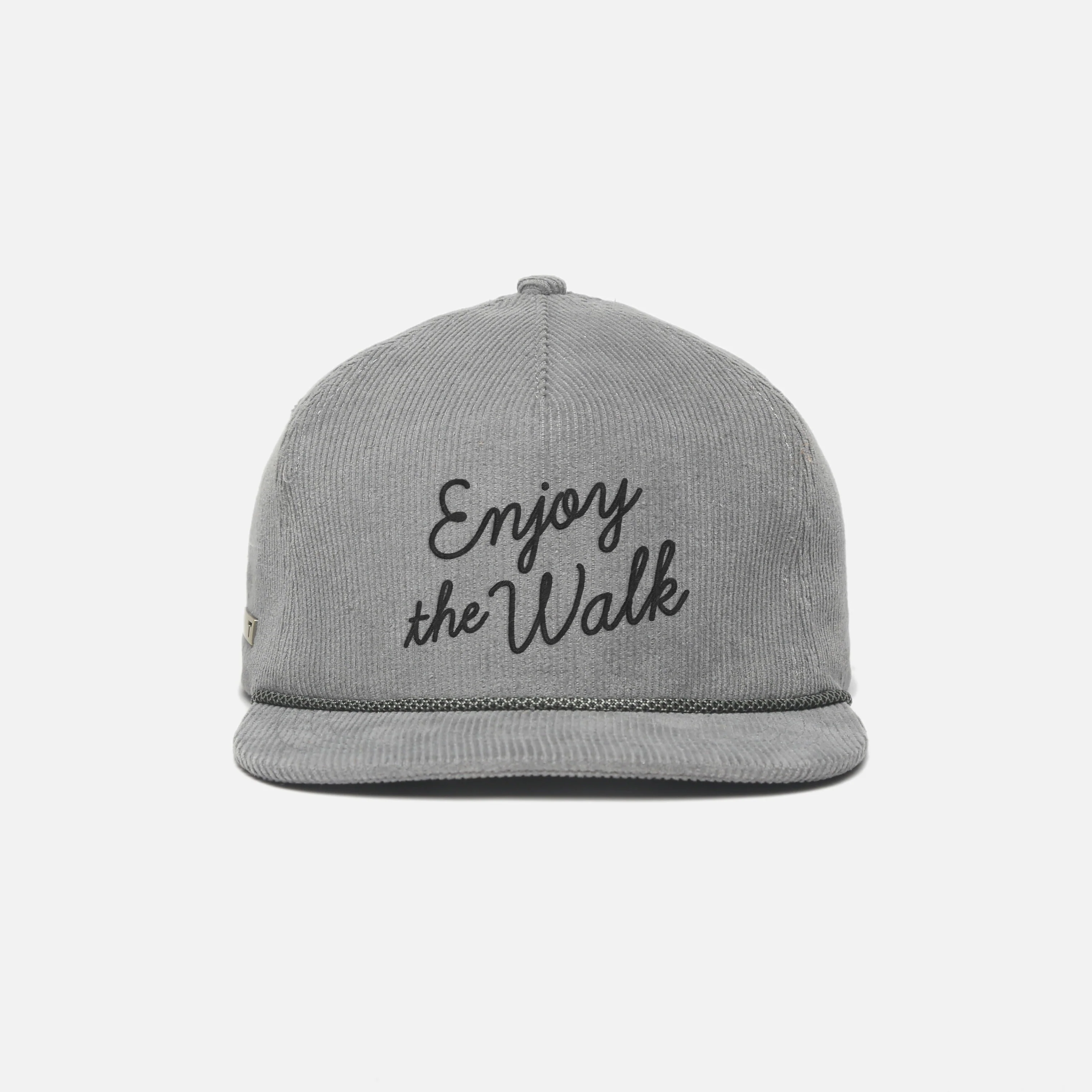 Our 5-Panel Corduroy Strapback hat brings a vintage aura to your on-course look. The hat features embroidered "Enjoy the Walk" script, an adjustable leather strapback, gold TRUE embellishments, and a classic rope detail across the bill.