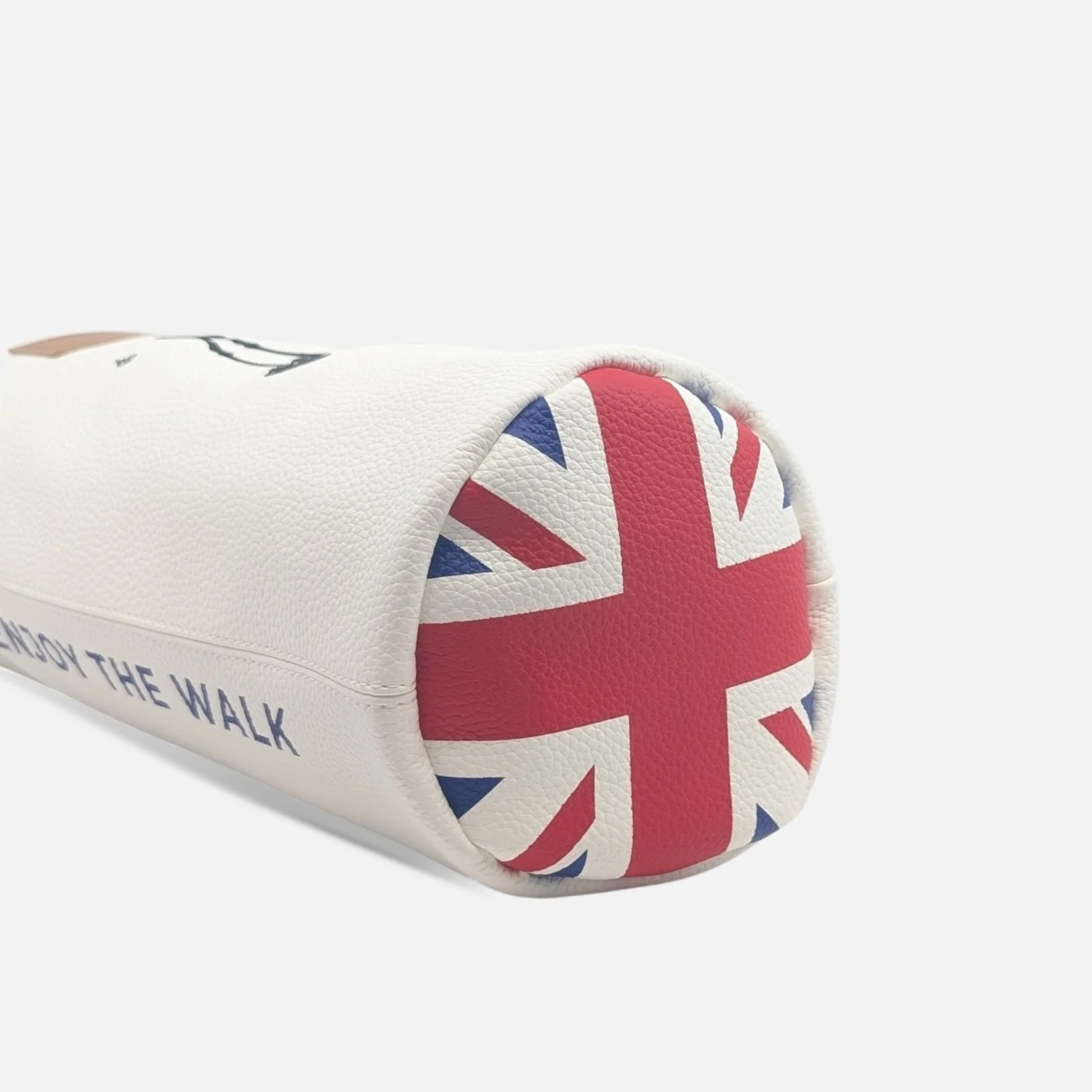 Introducing the TRUE linkswear Dead Golfer Head Cover - Crafted from a premium leatherette material and ultra-soft sherpa lining, this head cover delivers superior protection for your favourite club, shielding it from the elements with confidence. Designed for effortless functionality, it proudly showcases our iconic Dead Golfer logo, Enjoy The Walk motto, and a Union Jack gel print on the barrel making a statement every time you step on the course.