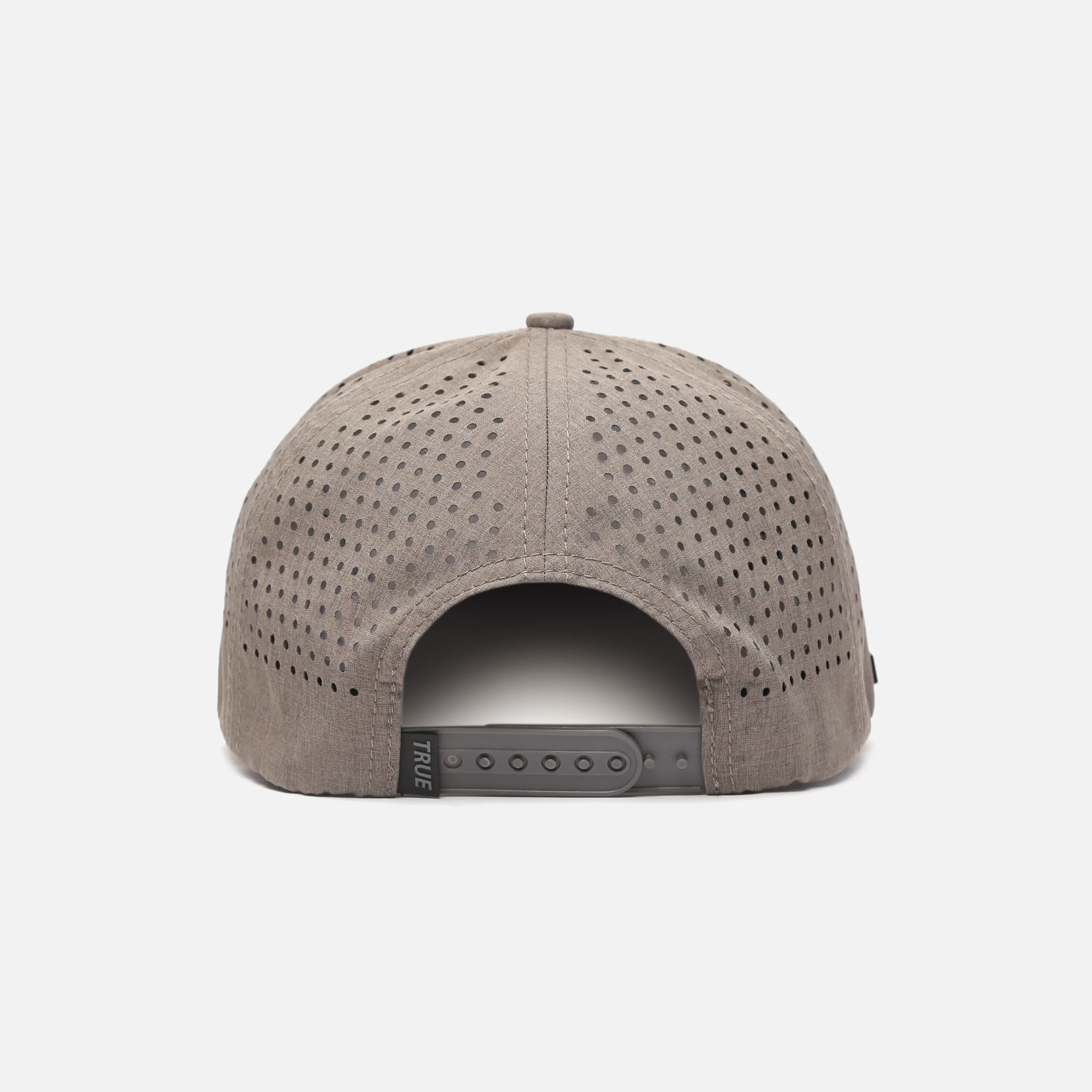 Our premium performance take on the 6-panel hat. Created with a brushed, and broken-in coastal feel, this is a modern design with some "stealth" detailing. The breathable front panel, laser perforated back, athletic sweatband and moisture wicking shell will keep you cool & dry.